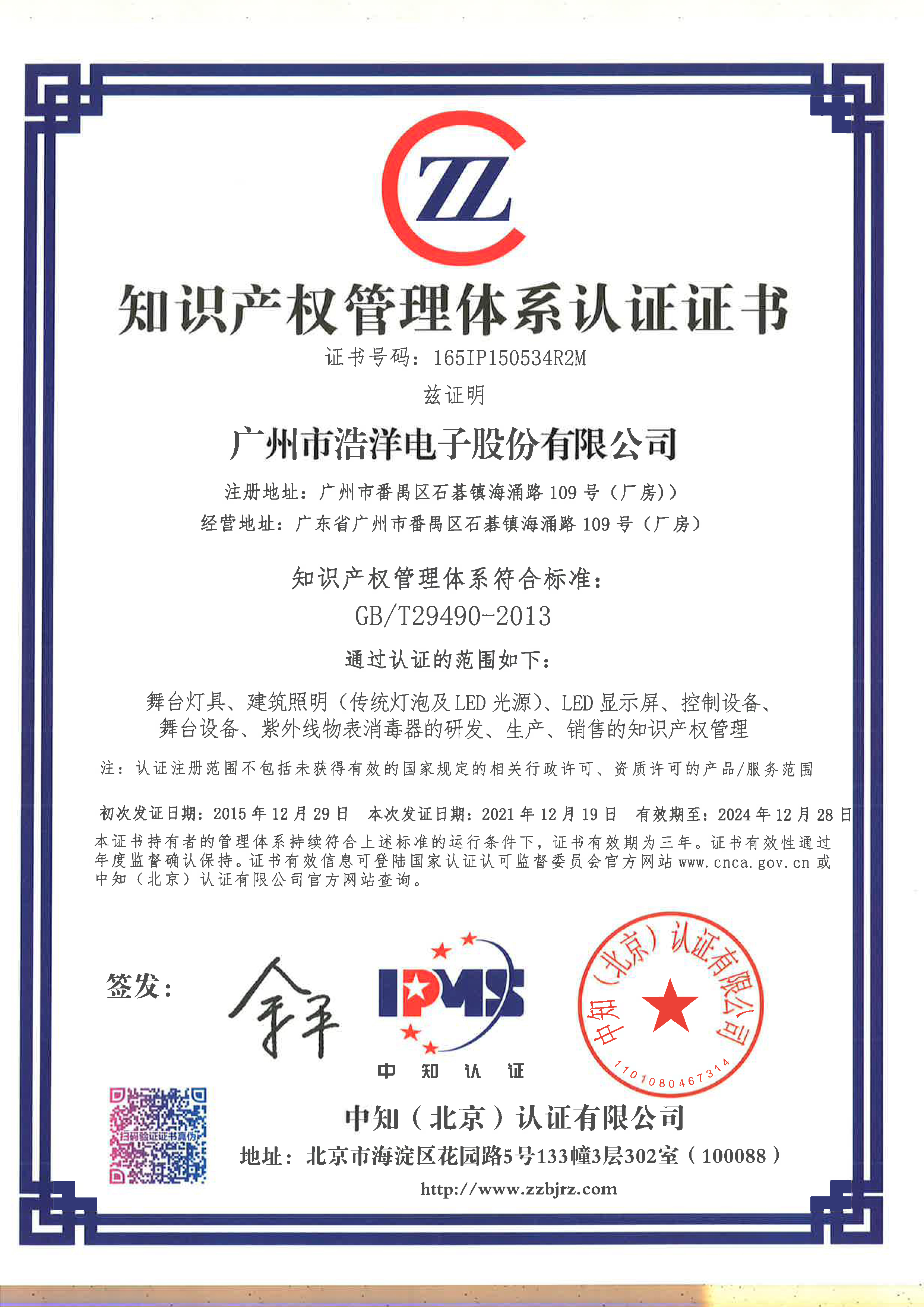 知識(shí)產(chǎn)權(quán)管理體系認(rèn)證證書