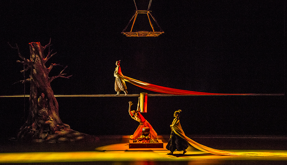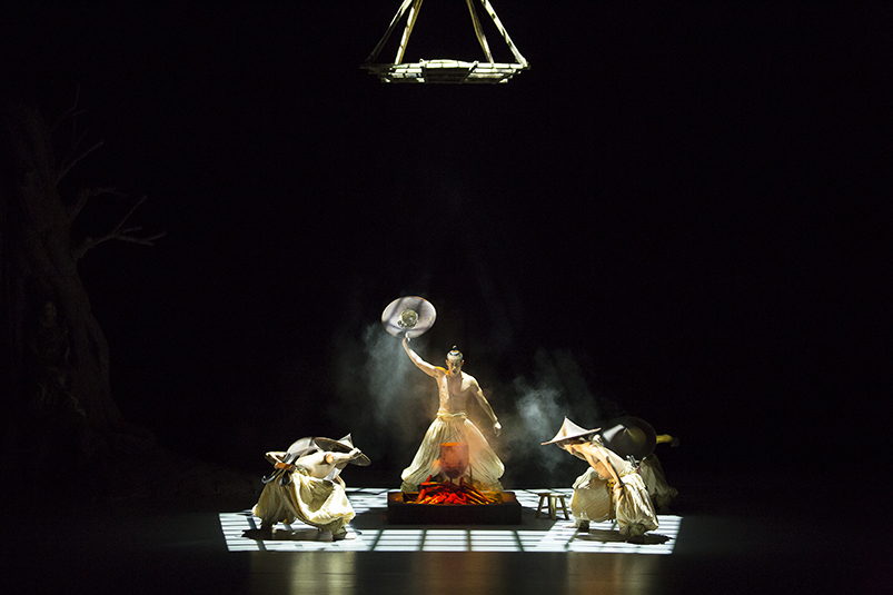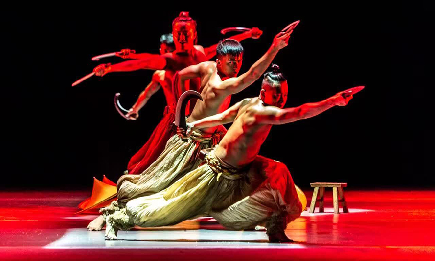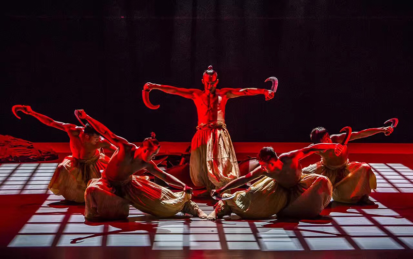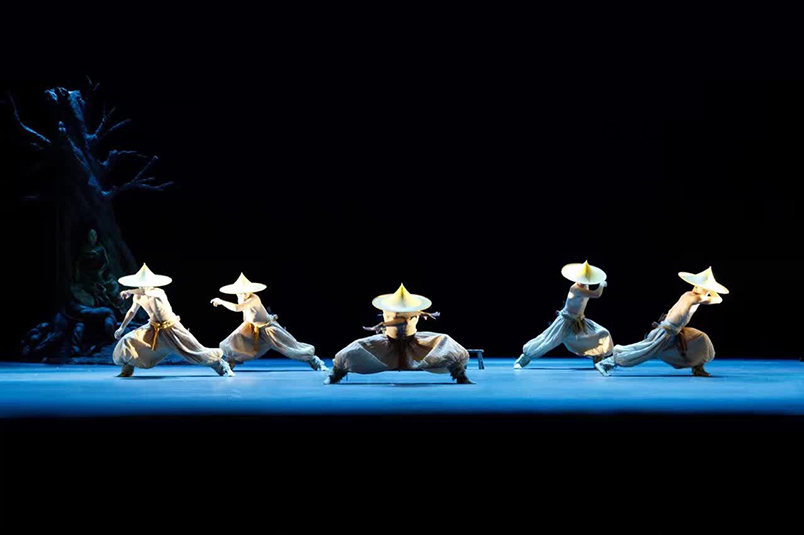 《巫卡調恰》的漢語意思是外婆的歌謠,這部舞蹈詩的創(chuàng)作植根于當?shù)孛缱逦幕滞卣沟秸麄€苗族社會,通過巫卡(外婆)吟唱古歌這一主線,詮釋了苗族遷徙史以及苗族社會生活的各種習俗,具有強烈形式感和邏輯性。