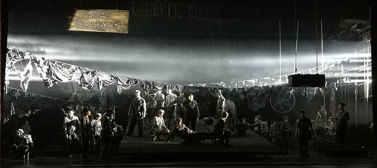 該劇的主題音樂更是一個亮點,編劇將捷克作曲家德沃夏克的《自新大陸》交響曲巧妙地貫穿了全劇,這首音樂作品寫于1893年,這部交響曲通過鮮明的音樂形象和真切的情感,充分地表達了作者身處異鄉(xiāng)的種種感受和對遙遠的祖國——捷克故鄉(xiāng)的深切思念之情。《從湘江到遵義》題材深厚、磅礴大氣,通過毛澤東等劇中主要角色的表現(xiàn),也反映出紅軍撤離根據(jù)地時對舊地深深的情感?!蹲孕麓箨憽方豁懬乃膫€樂章里的不同段落,也恰好配合著劇情的發(fā)展延伸,在最后演員謝幕的場景,也將音樂的融入發(fā)揮得淋漓盡致。好像使人感覺到這部120多年前的音樂作品就是為這部話劇量身訂制。
