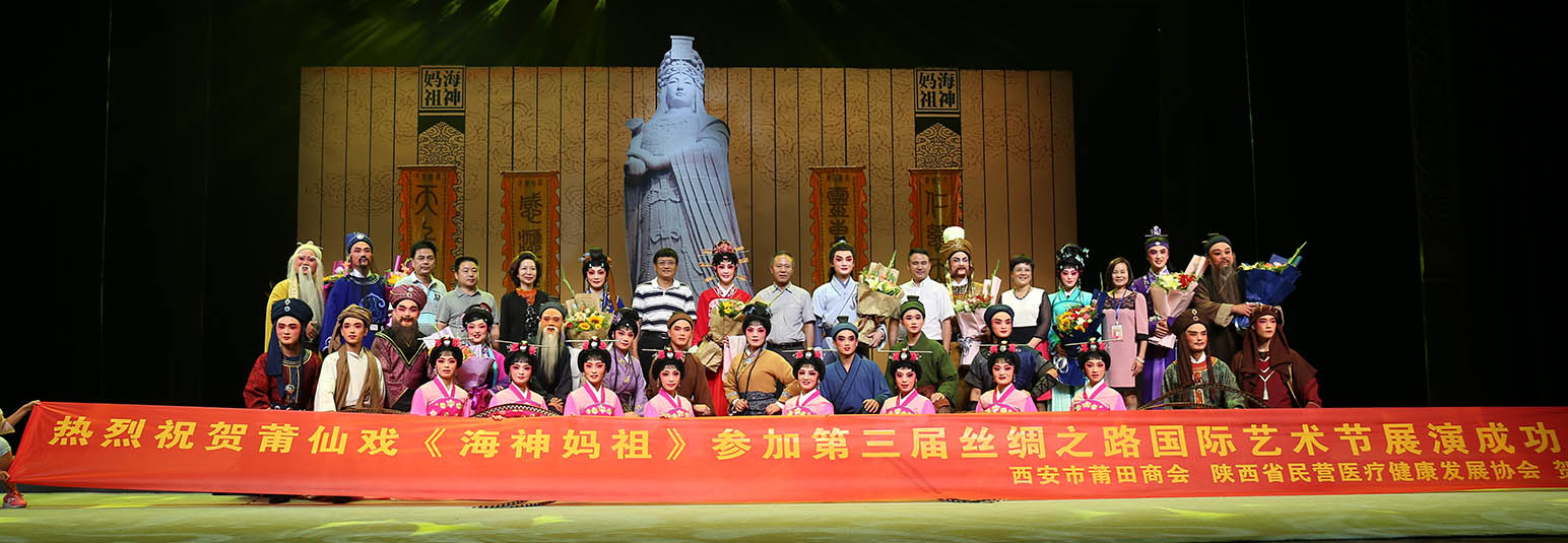 現(xiàn)代的燈光音響,色彩艷麗的戲裝,清悠婉轉(zhuǎn)的唱腔,古今融合的莆仙戲在2016年第三屆絲綢之路國(guó)際藝術(shù)節(jié)散發(fā)奪目光彩,在場(chǎng)觀眾如癡如醉地欣賞《海神媽祖》劇目,沉醉在媽祖娘娘正能量的無(wú)私精神里。