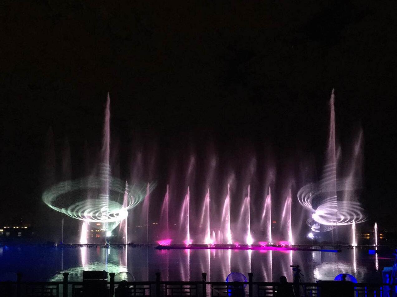 演出位于銀川閱海灣的一個(gè)核心區(qū),其擁有約3000㎡的漂浮平臺(tái)作為主表演區(qū)域,包含了機(jī)械、主體噴泉、投影激光,還有燈光音響等一系列設(shè)備,前方還設(shè)有890㎡的水下舞臺(tái)作為演員的主舞臺(tái)。