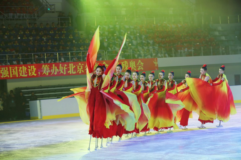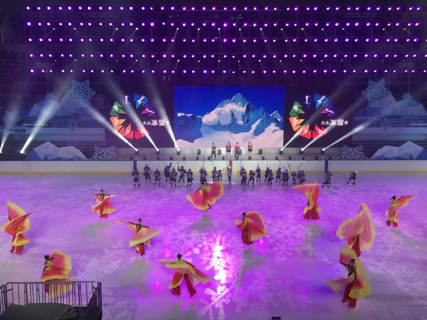 令人驚艷的冰上雜技表演;冰雪仙子、卡通雪娃娃、老年人、青年人跟隨冬奧冠軍在冰上翩翩起舞;專業(yè)花樣滑冰組合表演高難度花滑互動等冰雪演出贏得觀眾陣陣掌聲。
