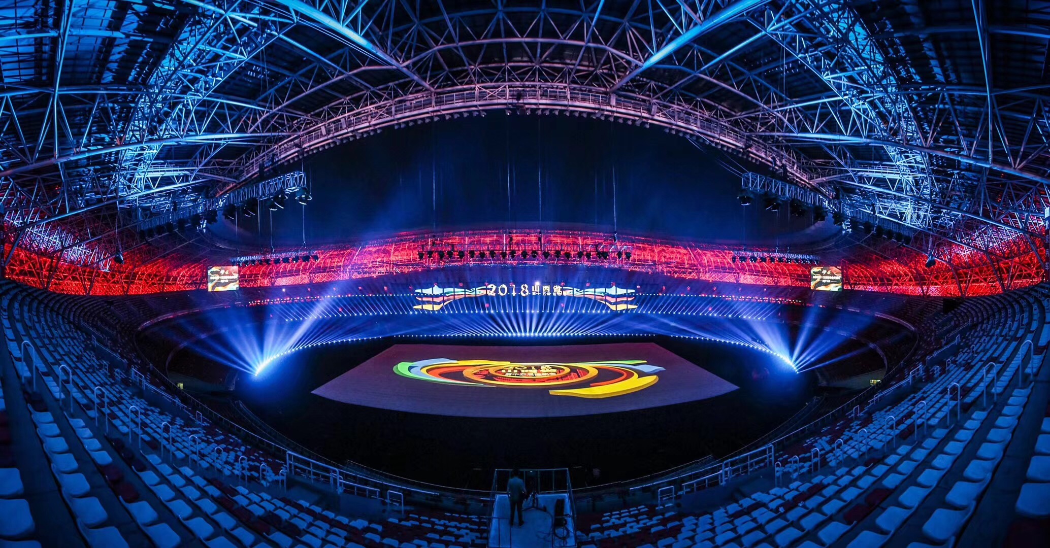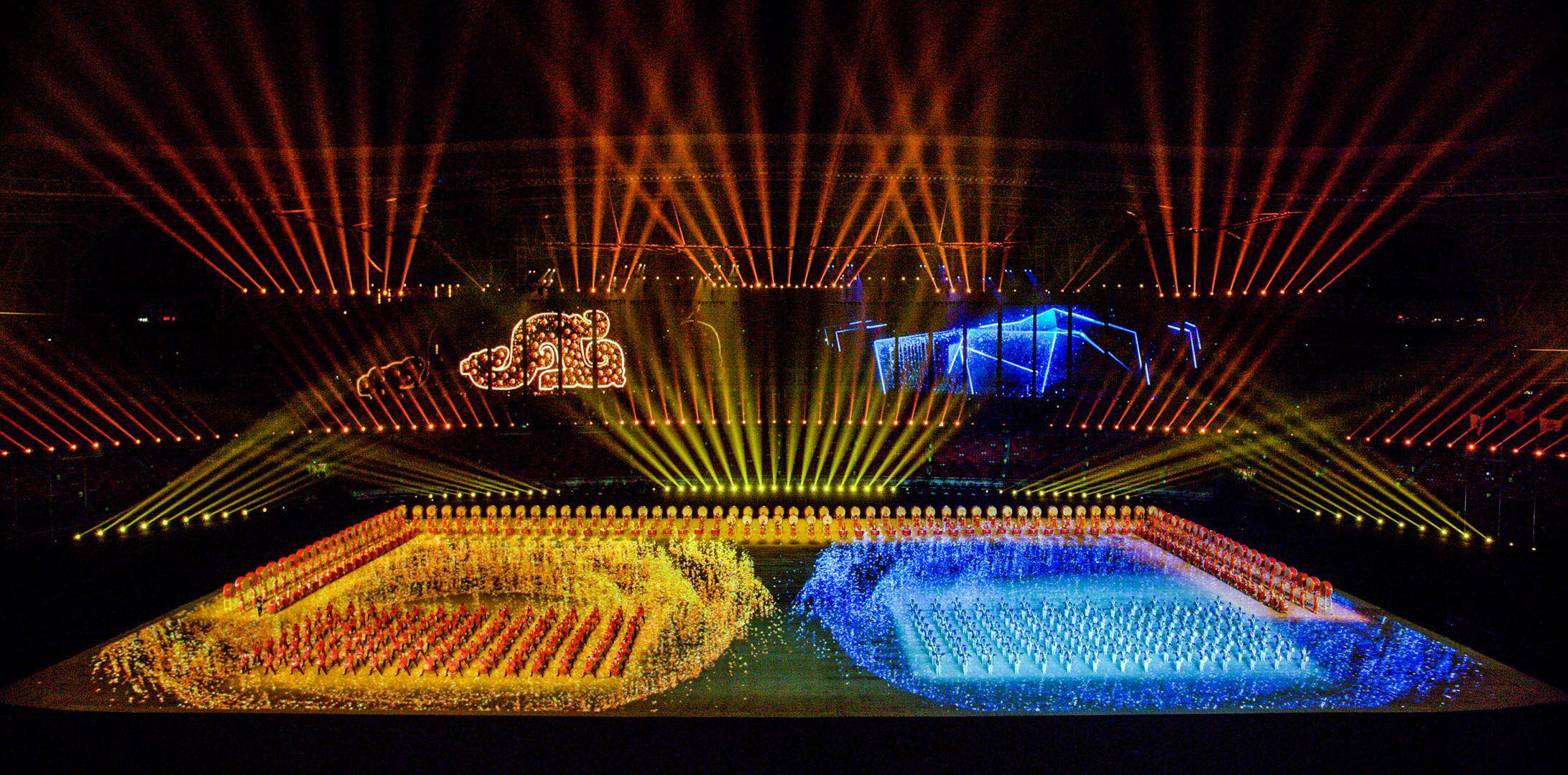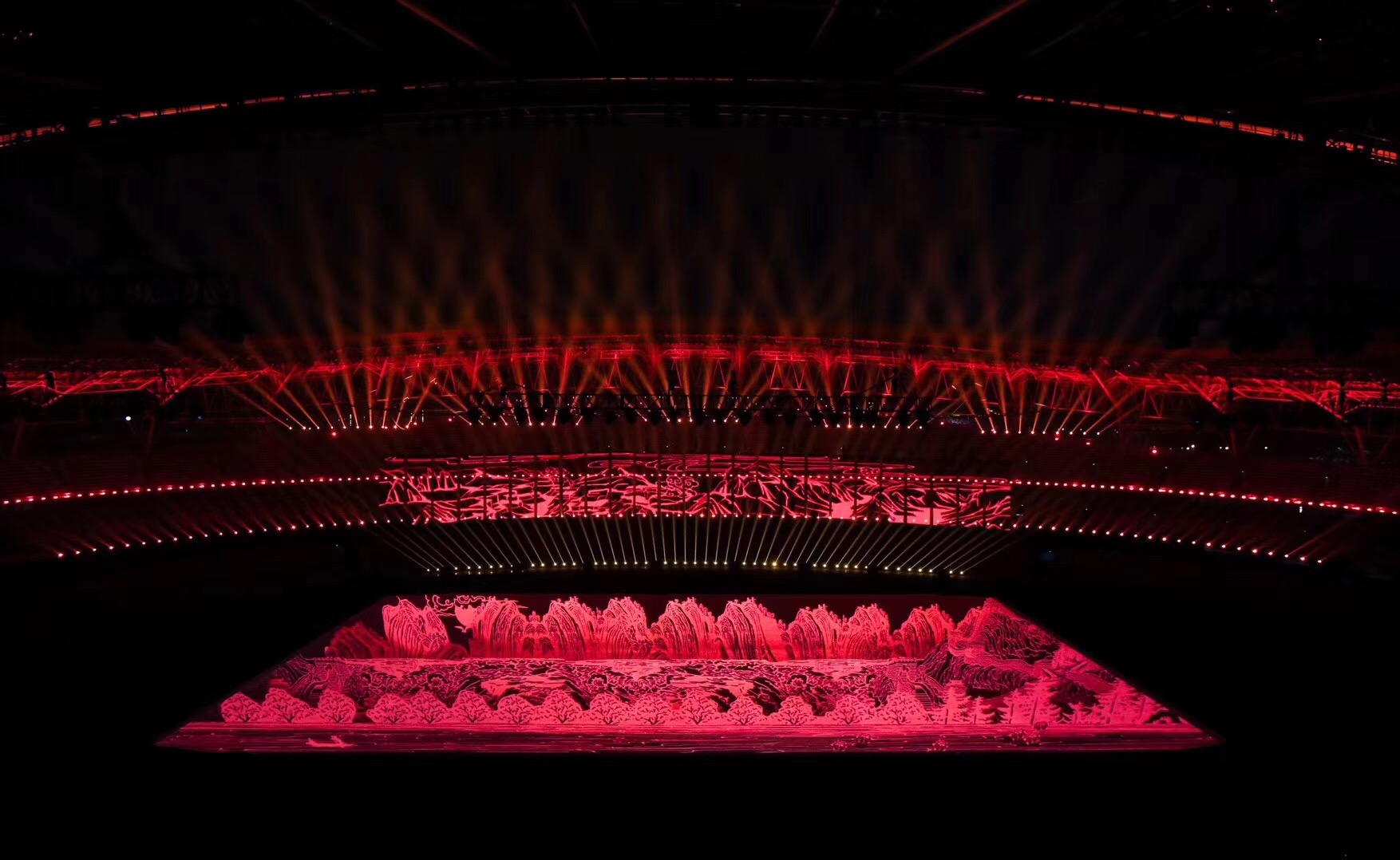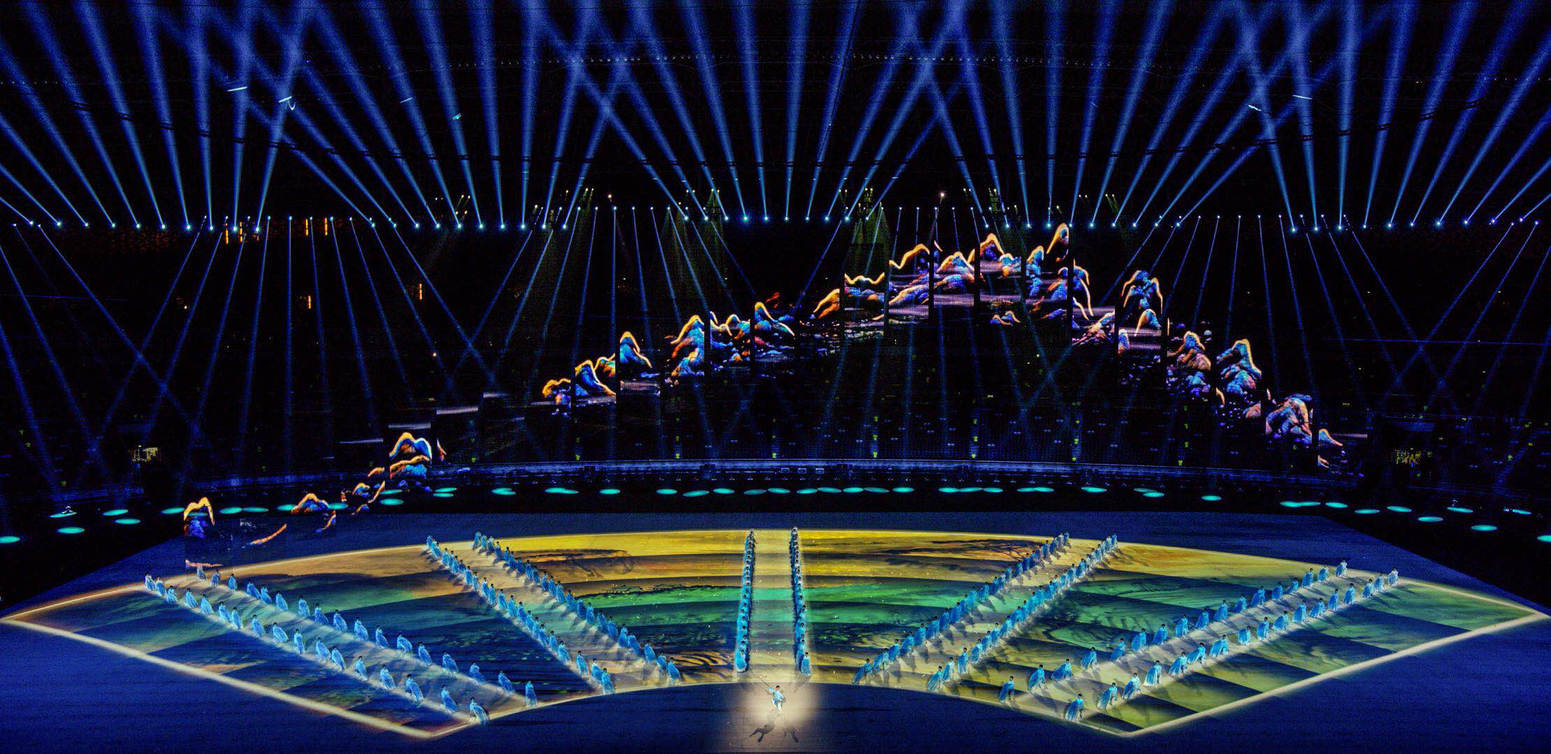 運動會開閉幕式整體設計的核心理念為“奮斗幸福觀”,開幕式的主題為“奮斗新時代“,閉幕式將以“幸福新征程”為主題與之呼應。開幕式演出運用了大型燈光設備、舞臺機械裝置、高清投影設備、懸掛表演裝置、先進音響設備、空中飛行設備等多種技術手段,形成地面、舞臺、空中三維藝術呈現(xiàn)形式,將中國傳統(tǒng)文化與國際先進科技進行完美結合,形成一臺國際化高水準的全景化演出。