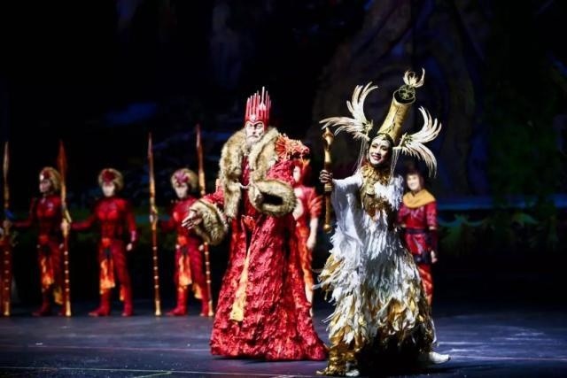 演出中的很多形象都有著東西方文化的雙重印記。主人公的形象既能讓觀眾聯想到孫悟空也帶著西方傳統(tǒng)神話的人物印記。劇中有東西方兩個王國,西方的是以龍和紅色元素來代表,而東方的則以鳳凰和金色元素來代表。