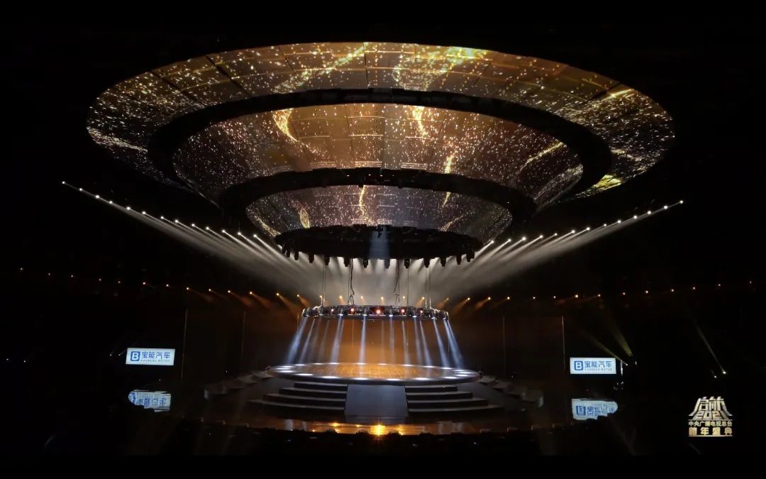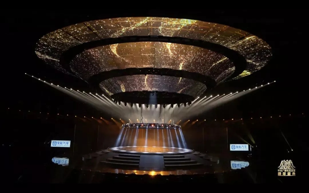 這次盛會的燈光設(shè)計圍繞“啟航·看中國”主題設(shè)計出一艘360度的太空飛船,燈光設(shè)計在此基礎(chǔ)上將太空飛船進行了270度的視覺包裹,將主背景設(shè)計為矩陣燈墻,為舞臺整體視覺提升高度。