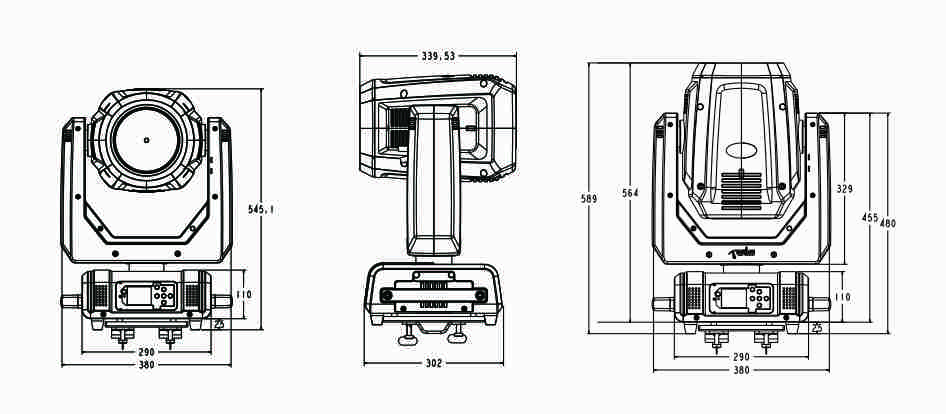 可從控臺(tái)完成更改DMX地址碼,遙控開(kāi)關(guān)燈泡,機(jī)器重設(shè)等功能