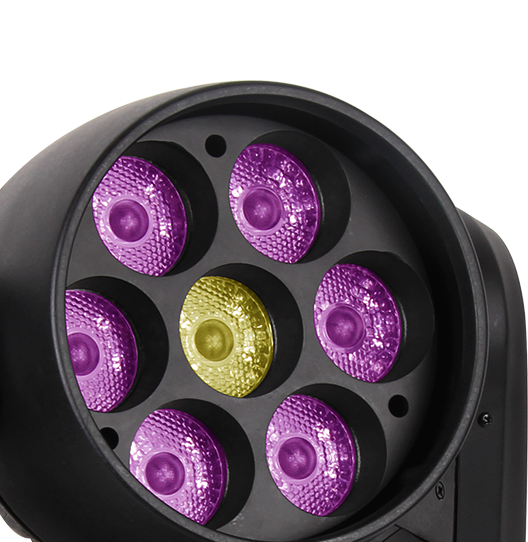 LED類型:7顆15W大功率RGBW 4合1 LED, 達(dá)到均勻細(xì)膩的混色效果
