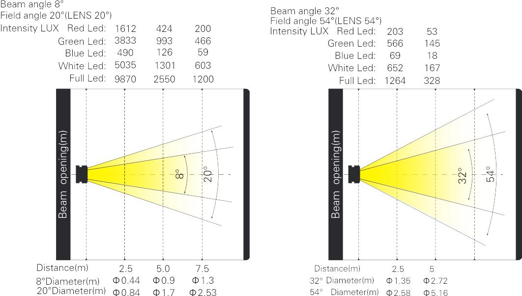 光斑角度:8°~32° 線性變化