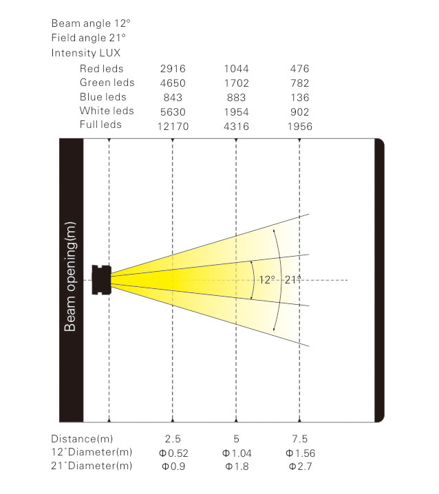 LED類型:16顆10W大功率RGBW 4合1 LED,達到均勻細膩的混色效果