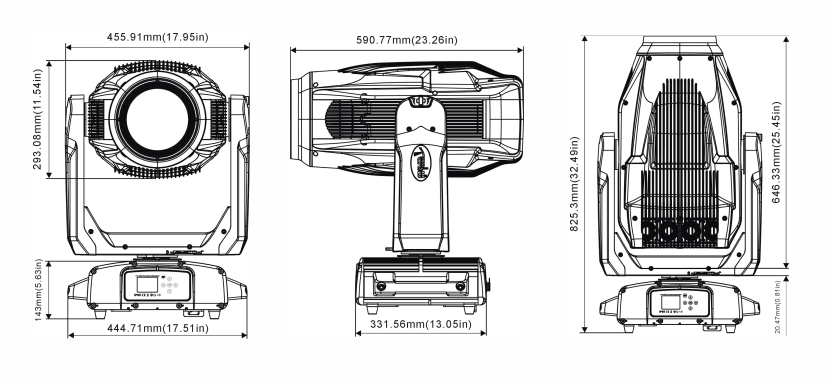 切割盤:一組由4個(gè)切角片組成可控制的光斑切角系統(tǒng),整個(gè)切角系統(tǒng)可做90°旋轉(zhuǎn)