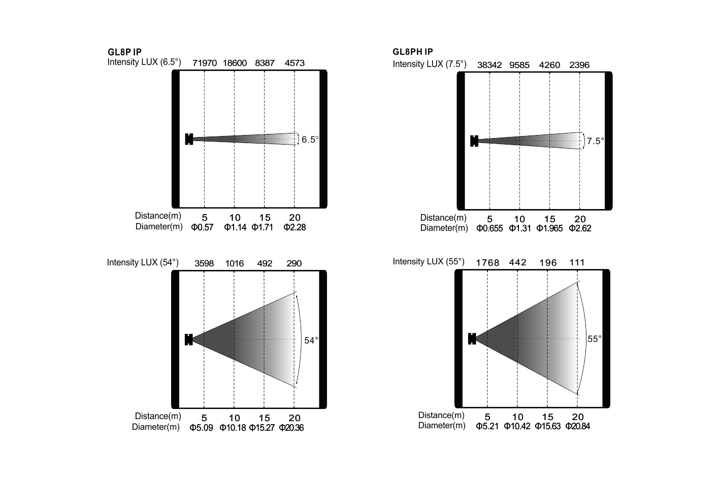 變焦范圍:6.5°- 54°(GL8P IP), 7.5°-55°(GL8PH IP)