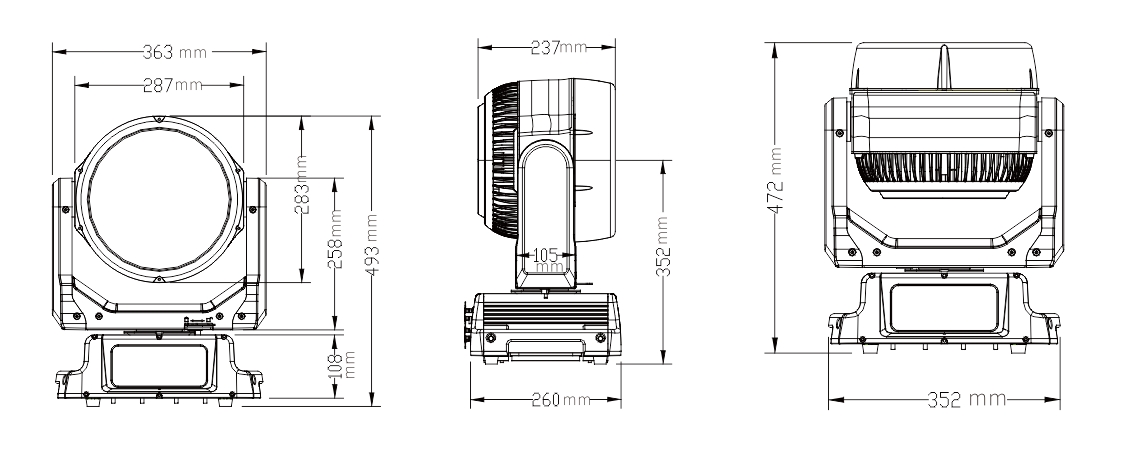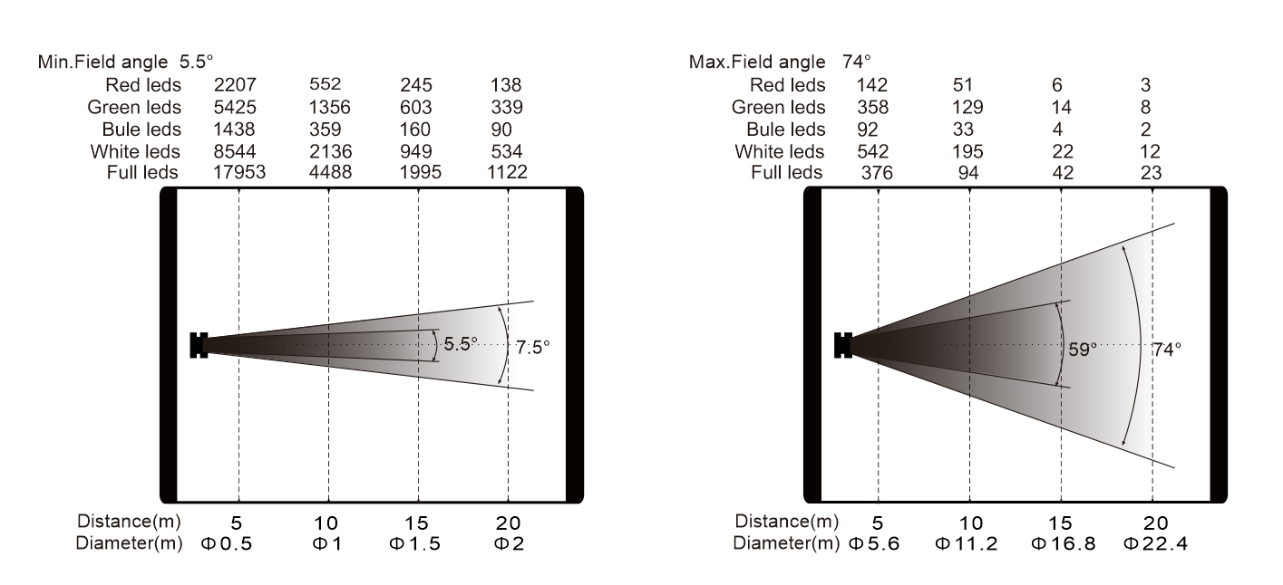 變焦范圍:光束角: 5.5°-59°,光斑角: 7.5°-74°