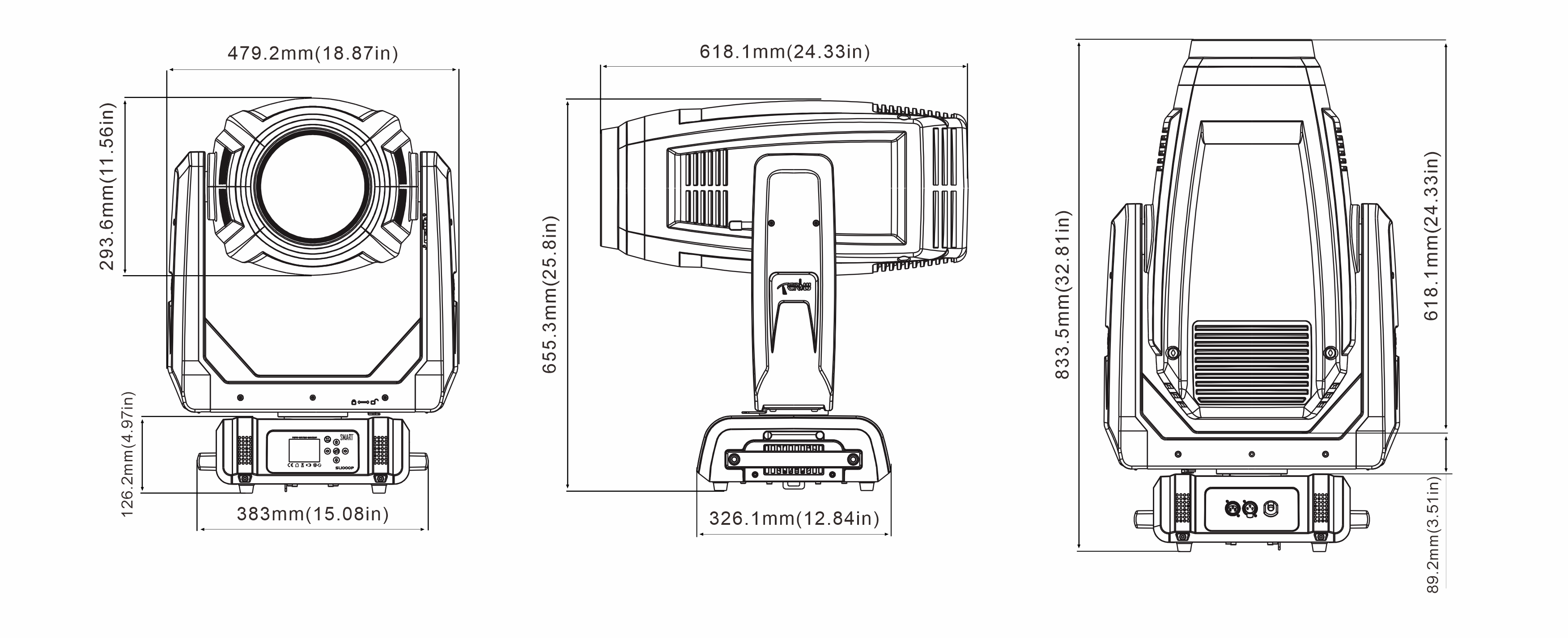 切割盤:一組由4個(gè)切角片組成可控制的光斑切角系統(tǒng),整個(gè)切角系統(tǒng)可做90°旋轉(zhuǎn)