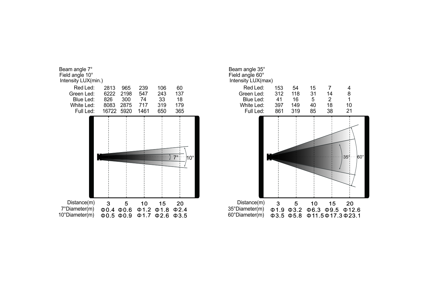 變焦范圍:光束角:7°-35°,光斑角:10°-60°